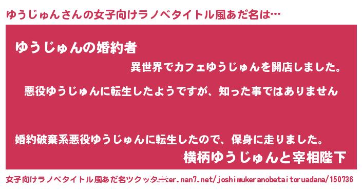 | 男性向けラノベタイトル風あだ名 | 『この素晴らしい世界にゆうじゅんを!』 |