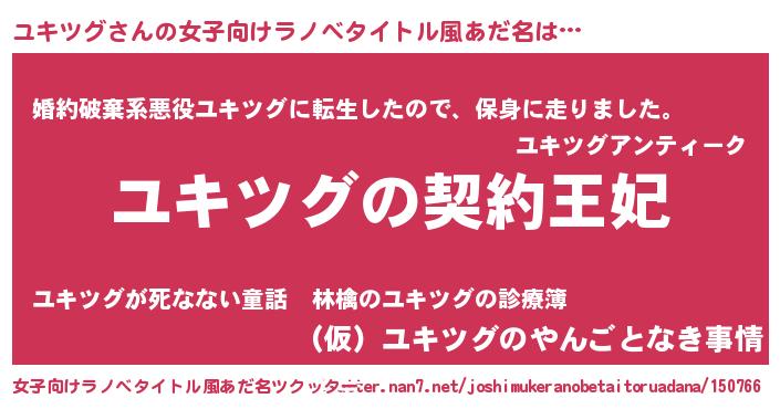 | 男性向けラノベタイトル風あだ名 | 『ユキツグという概念が存在しない退屈な世界 』 |