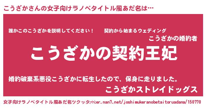 | 男性向けラノベタイトル風あだ名 | 『こうざかという概念が存在しない退屈な世界 』 |