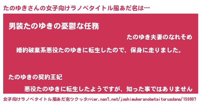 | 男性向けラノベタイトル風あだ名 | 『タノユキスレイヤー』 |
