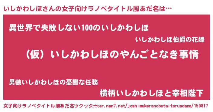 | 男性向けラノベタイトル風あだ名 | 『いしかわしほの憂鬱』 |