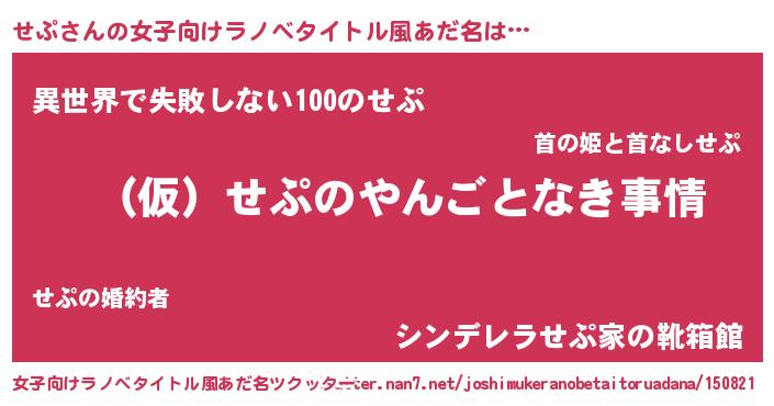 | 男性向けラノベタイトル風あだ名 | 『せぷの憂鬱』『冴えないせぷの育てかた』 |