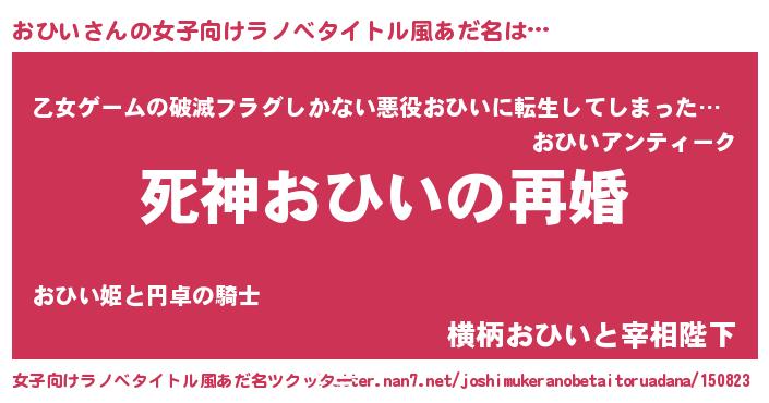 | 男性向けラノベタイトル風あだ名 | 『ノーゲーム・ノーオヒイ』 |