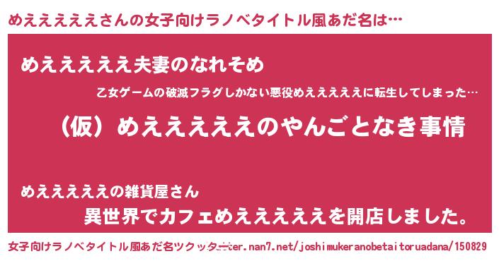 | 男性向けラノベタイトル風あだ名 | 『めえええええの憂鬱』 |