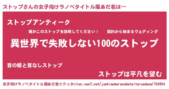 | 胡散臭い通販商品みたいなあだ名 | 『絶対に幸福をもたらす健康食品…その名も「ストップ」』 |