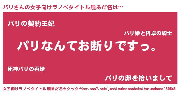 | 意味不明あだ名 | 『自称パリ』『永久保存パリ』 |
