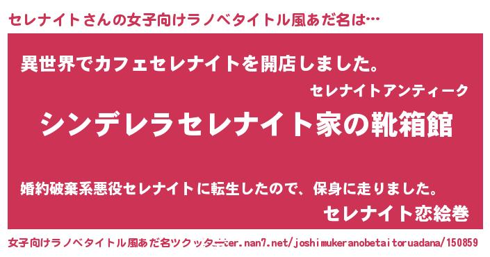 | ヘコむあだ名 | 『セレナイト(苦笑)』『セレふぇ~』 |