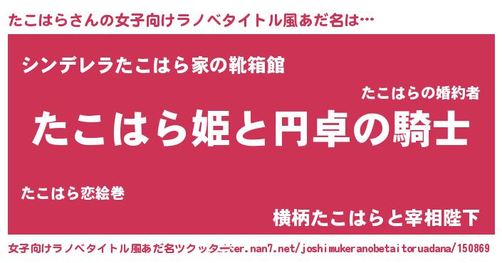| 男性向けラノベタイトル風あだ名 | 『たこはらの憂鬱』『緋弾のタコハラ』 |