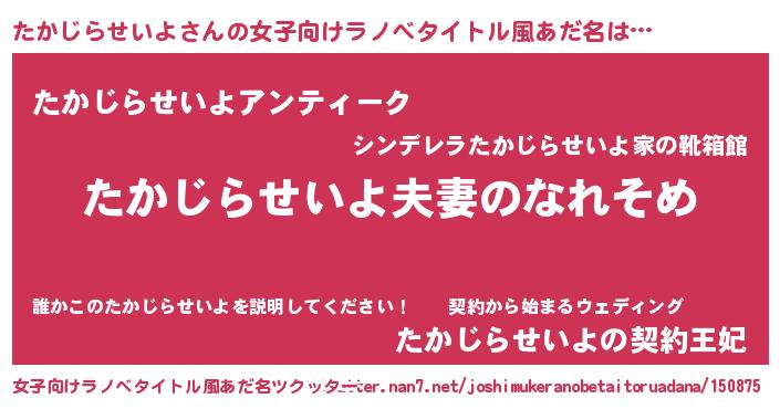 | 胡散臭い通販商品みたいなあだ名 | 『100人中100人が認めたマグネット磁石…その名も「たかじらせいよ」』 |