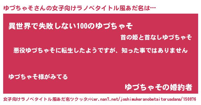 | 胡散臭い通販商品みたいなあだ名 | 『あなたにだけ特別に提供する世界で10本だけ現存している希少なブランデー…その名も「ゆづちゃそ」』 |