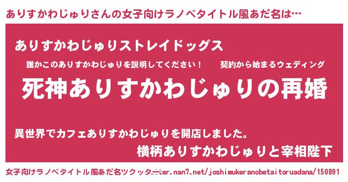| 男性向けラノベタイトル風あだ名 | 『ノーゲーム・ノーアリスカワジュリ』 |