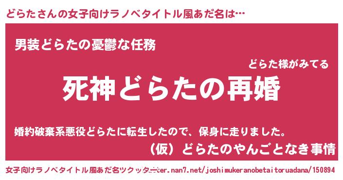 | 男性向けラノベタイトル風あだ名 | 『ノーゲーム・ノードラタ』 |