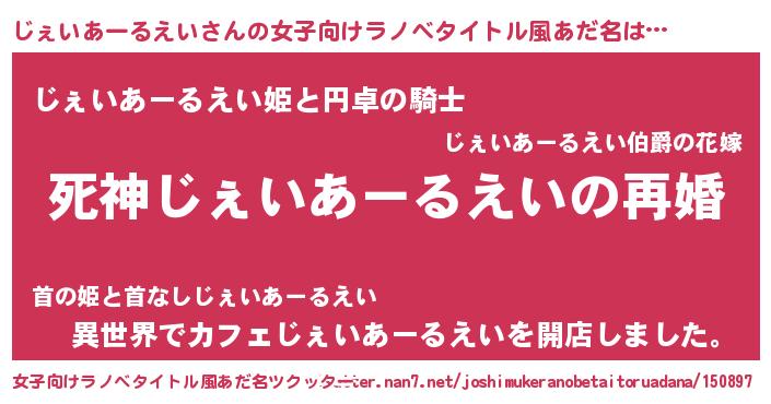 | 男性向けラノベタイトル風あだ名 | 『ノーゲーム・ノージェイアールエイ』 |