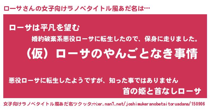 | ヒーロー風カッコイイあだ名 | 『スーパーローサ』『暗黒騎士ロー』 |