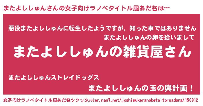 | 肩書あだ名 | 『またよししゅん総理大臣』 |
