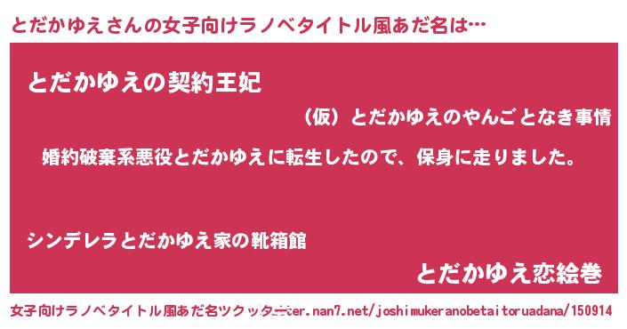 | ヒーロー風カッコイイあだ名 | 『ネオトダカユエ』『愛の使者とだかゆえ』 |