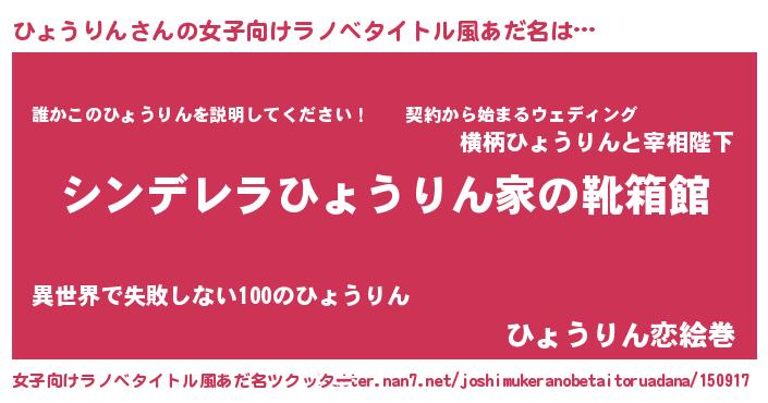 | 胡散臭い通販商品みたいなあだ名 | 『必ず成功するブレスレット…その名も「ひょうりん」』 |