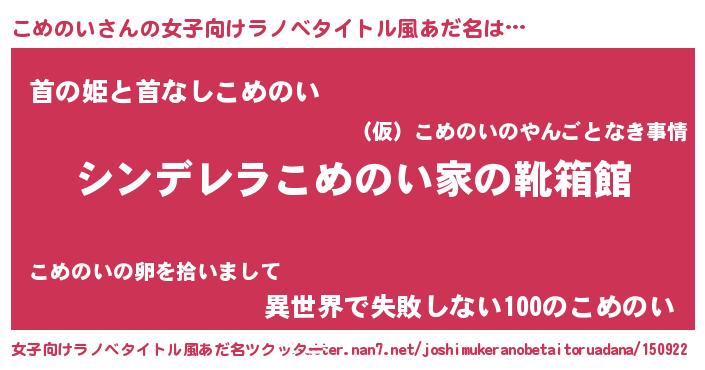 | 胡散臭い通販商品みたいなあだ名 | 『来世でも幸せになれる水素水…その名も「こめのい」』 |