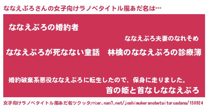 | 男性向けラノベタイトル風あだ名 | 『魔弾の王とななえぷろ』 |