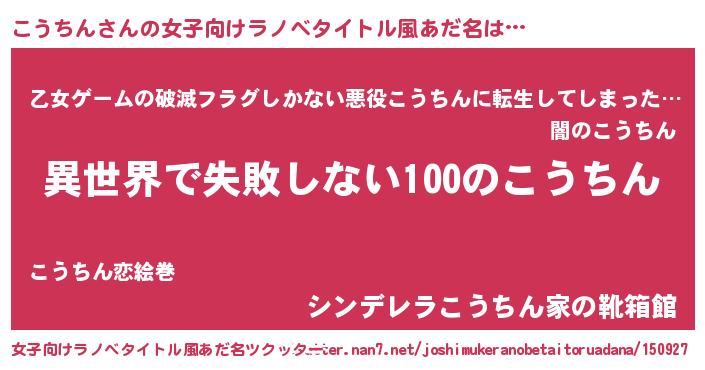 | 男性向けラノベタイトル風あだ名 | 『こうちんという概念が存在しない退屈な世界 』 |