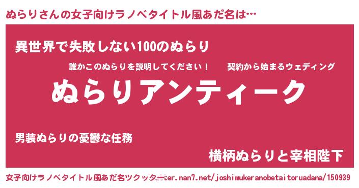| 男性向けラノベタイトル風あだ名 | 『魔法科高校のぬらり』 |