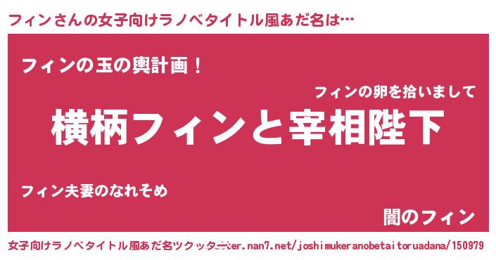 | 男性向けラノベタイトル風あだ名 | 『フィンに滅ぼされるだけの簡単なお仕事です』 |