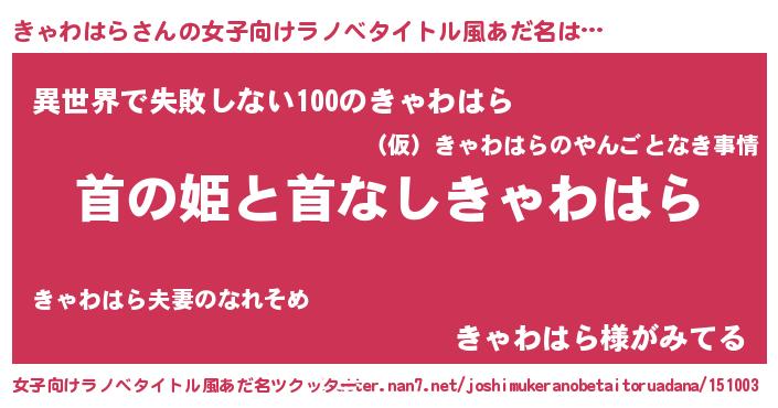| 胡散臭い通販商品みたいなあだ名 | 『来世でも幸せになれる招き猫…その名も「きゃわはら」』 |