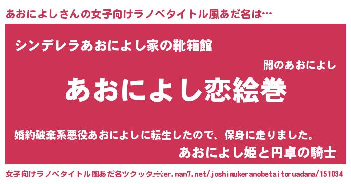 | 男性向けラノベタイトル風あだ名 | 『ノーゲーム・ノーアオニヨシ』 |