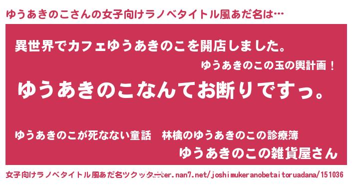 | 意味不明あだ名 | 『自称ゆうあきのこ』 |