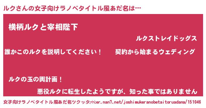 | 胡散臭い通販商品みたいなあだ名 | 『億万長者になれる水晶球…その名も「ルク」』 |