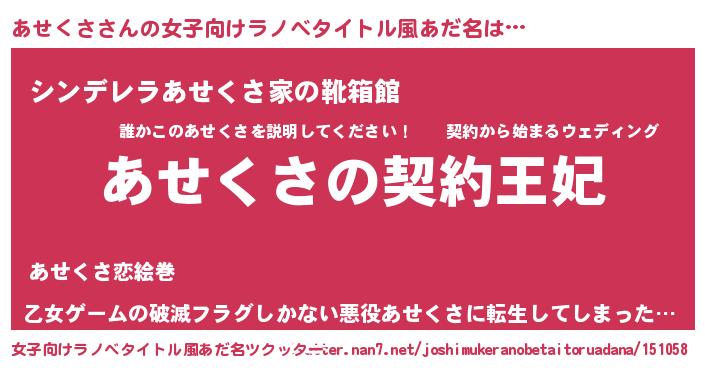| 胡散臭い通販商品みたいなあだ名 | 『来世でも幸せになれる健康食品…その名も「あせくさ」』 |
