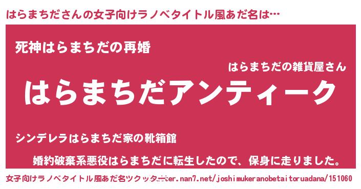| 意味不明あだ名 | 『自称はらまちだ』『永久保存はらまちだ』 |