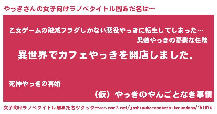 | 男性向けラノベタイトル風あだ名 | 『誰もが恐れるあのやっきが、ぼくの専属メイドになるようです。』 |