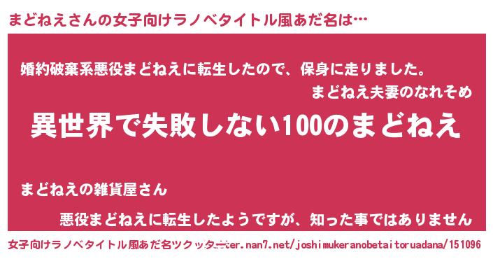 | 胡散臭い通販商品みたいなあだ名 | 『絶対に幸福をもたらす健康食品…その名も「まどねえ」』 |