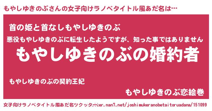 | 肩書あだ名 | 『もやしゆきのぶ総理大臣』 |