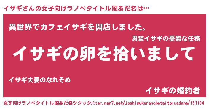 | 男性向けラノベタイトル風あだ名 | 『イサギの嫁は女の子じゃないと思った?』 |