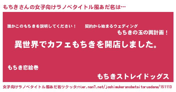| 胡散臭い通販商品みたいなあだ名 | 『前代未聞の健康食品…その名も「もちき」』 |