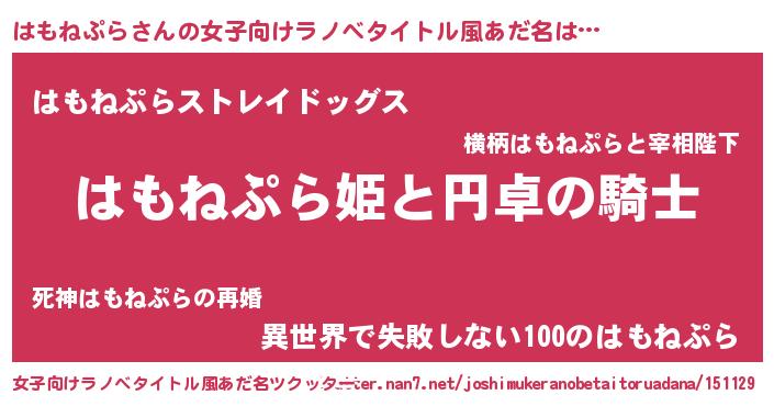| 胡散臭い通販商品みたいなあだ名 | 『モテモテ間違いなし霊験あらたかなお札…その名も「はもねぷら」』 |