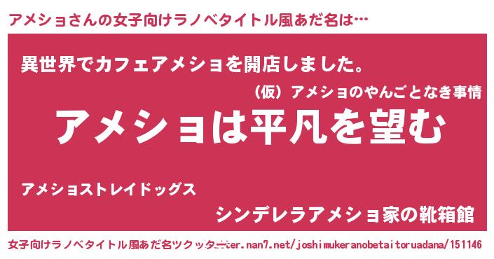 | ヘコむあだ名 | 『アメっちょ』『アメショ(震え声)』 |