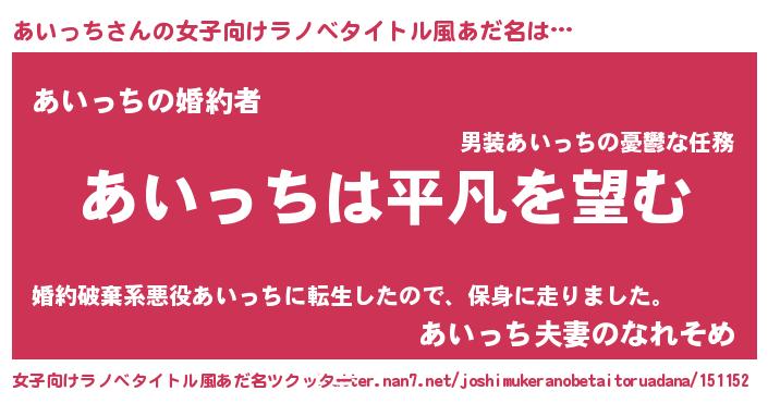 | 男性向けラノベタイトル風あだ名 | 『ダンジョンにあいっちを求めるのは間違っているだろうか』 |