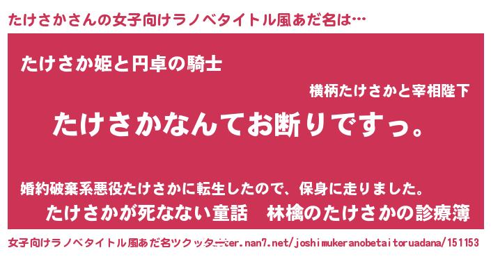 | 男性向けラノベタイトル風あだ名 | 『魔法科高校のたけさか』 |