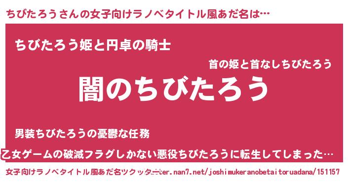 | 男性向けラノベタイトル風あだ名 | 『Re:ちびたろうから始める異世界生活』 |