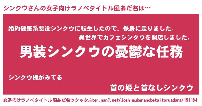 | 胡散臭い通販商品みたいなあだ名 | 『前代未聞の健康食品…その名も「シンクウ」』 |