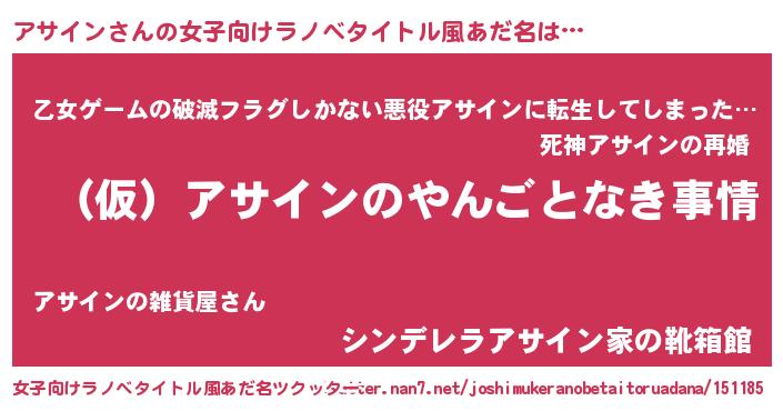 | 男性向けラノベタイトル風あだ名 | 『アサインの憂鬱』『緋弾のアサイン』 |