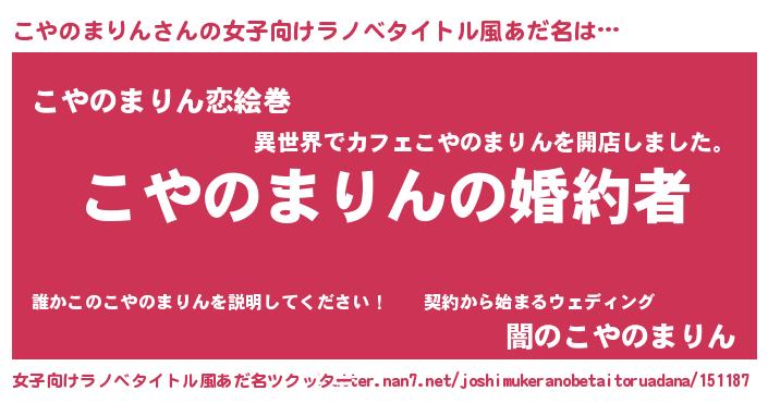 | 胡散臭い通販商品みたいなあだ名 | 『運命の人と巡り会える高級そうな絵画…その名も「こやのまりん」』 |