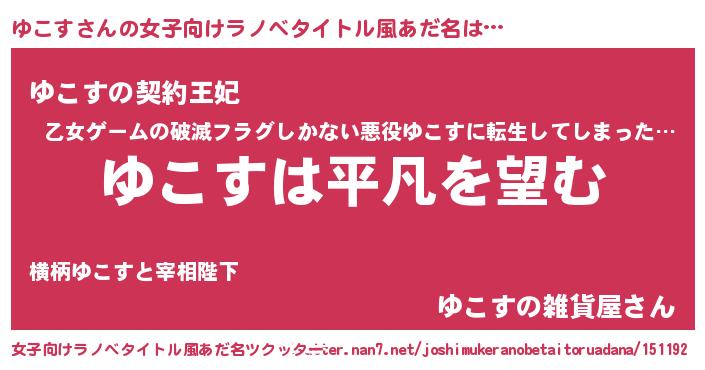 | 男性向けラノベタイトル風あだ名 | 『ダンジョンにゆこすを求めるのは間違っているだろうか』 |