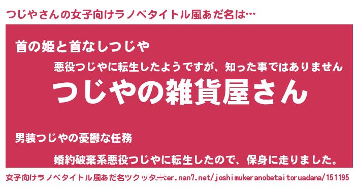 | 男性向けラノベタイトル風あだ名 | 『やはりつじやの青春ラブコメはまちがっている 』 |