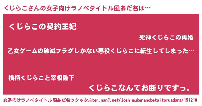 | ヘコむあだ名 | 『くじらこ(笑)』『くじ太郎』 |
