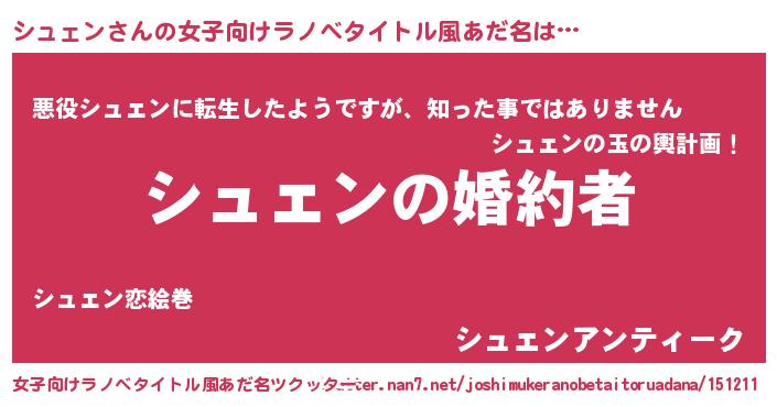 | 意味不明あだ名 | 『シュェンフォーエバー』『自称シュェン』 |
