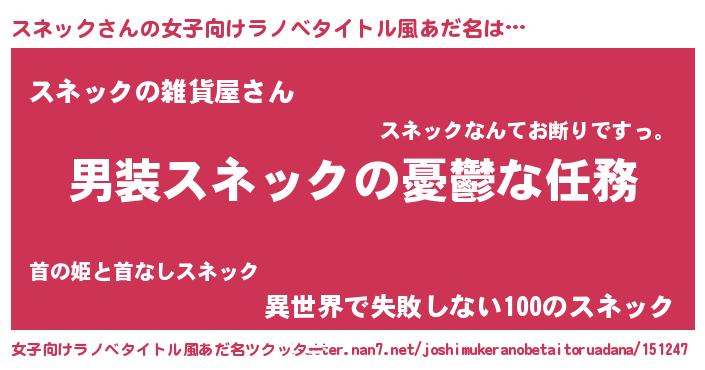 | 胡散臭い通販商品みたいなあだ名 | 『運命の人と巡り会える高級そうな壺…その名も「スネック」』 |